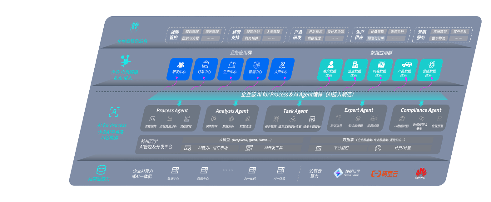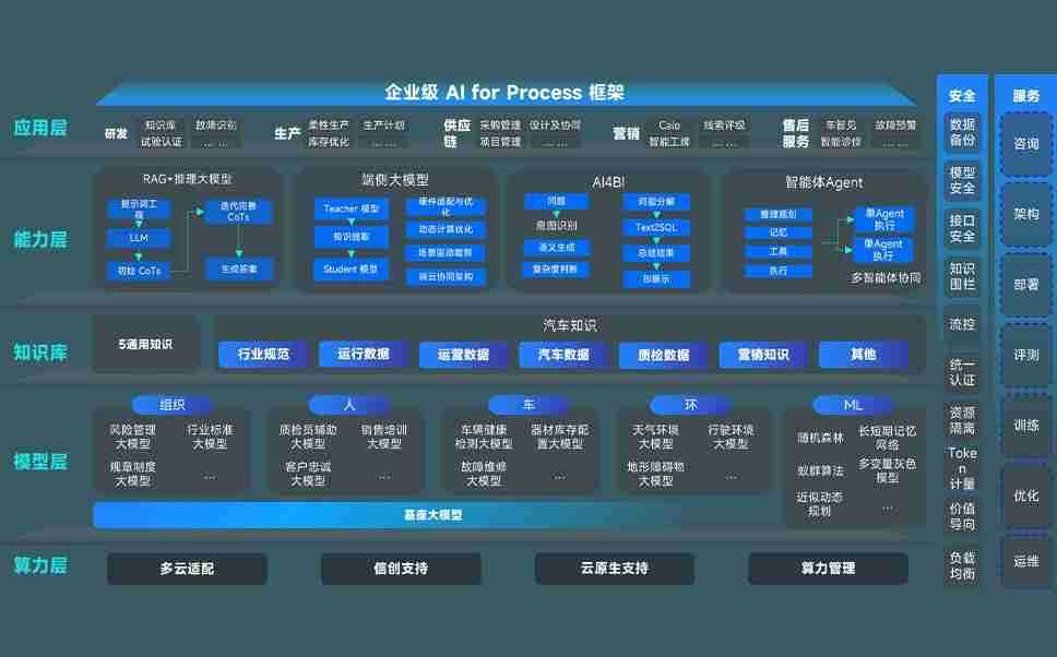 迪威国际问学智车解决方案是一套基于AI技术的汽车行业智能化系统,,,覆盖从底层算力到顶层AI应用的全栈方案。。方案由算力层、、、模型层和应用层组成:算力层,,,,方案支持多种一体机配置,,具备云端灵活部署、、、、多云适配以及动态优化计算资源的能力;模型层,,,迪威国际问学平台版提供了企业级AI应用一站式构建与管理平台,,,支持基于后训练强化技术的汽车企业专属模型的训练、、评测和运营;应用层,,,,迪威国际问学DeepSeek版提供包括超级员工、、智能招采、、、、智能营销、、智能客服、、AI for BI等一系列解决方案,,可助力汽车行业实现数字化转型,,,让管理更智能、、响应更敏捷。。。